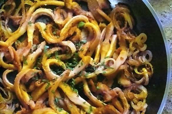 Așadar: 1 kg de burtă (prefiartă), tăiată fideluță, 700 g ceapă (curățată și tocată mărunt), 80 g unt, 5 linguri de ulei, 1 lingură de oțet, 1 legătură de pătrunjel, sare și piper.